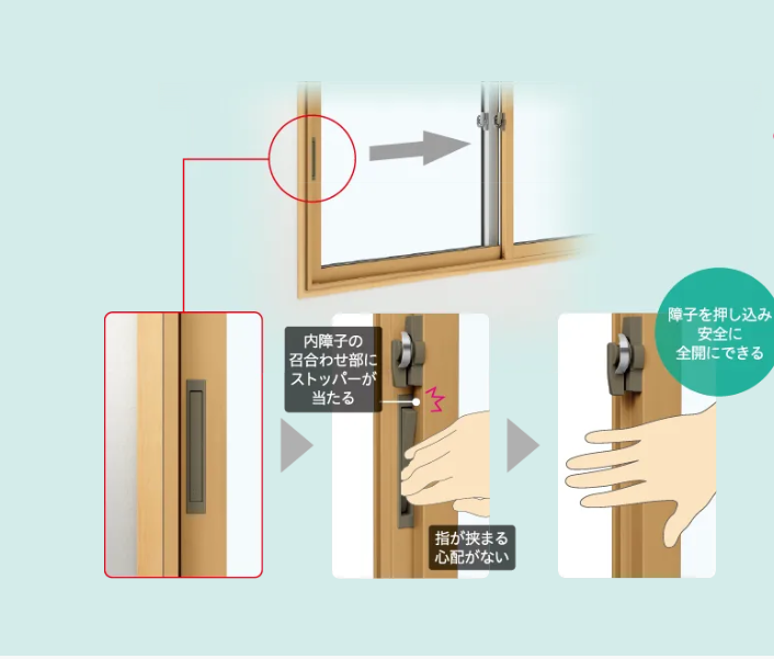 毎日の開け閉めをより快適にするため、ウチリモには新形状の引き手を標準装備。
