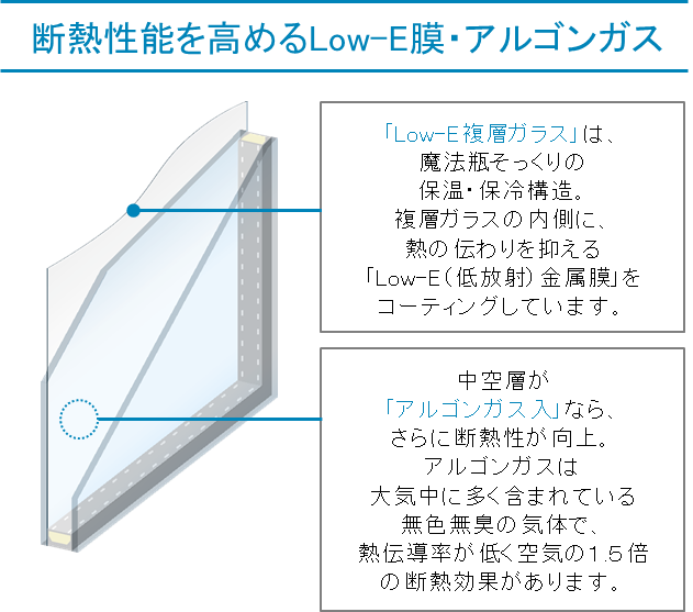 より高い断熱性能を求める場合、アルゴンガスなどの