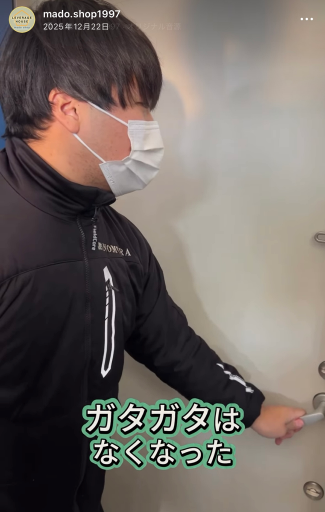 先日、インスタグラムにドアのガタガタを直す方法の動画をアップ致しました。