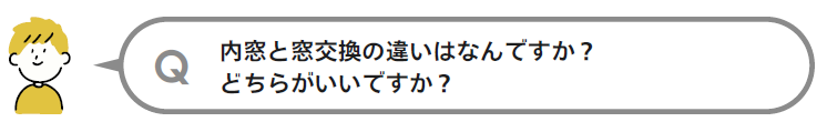 内窓は今ある窓にもう一枚窓を取り付けるものです。窓交換は今ある窓を新しいものに変えるものです。窓交換は壁を壊さず行う、カバー工法などもあります。