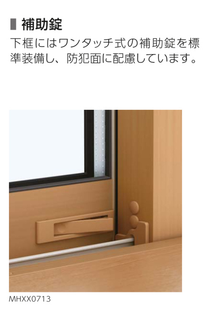 縦すべり出し窓や横すべり出し窓には、開く角度を制限するタイプのサブロックが有効です。子どもが外を覗こうとしても、危険な開き方にならないよう制御できます。