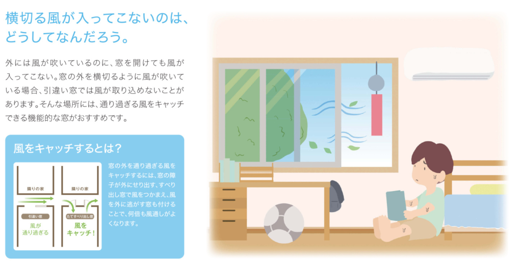 そこで注目したいのが「窓の使い方」。ただ開けるだけではなく、風の通り道を意識することで、室内環境は大きく変わります。今回は、風を効率よく取り込む方法と、天然の暖かさを取り入れるための窓についてお話します。