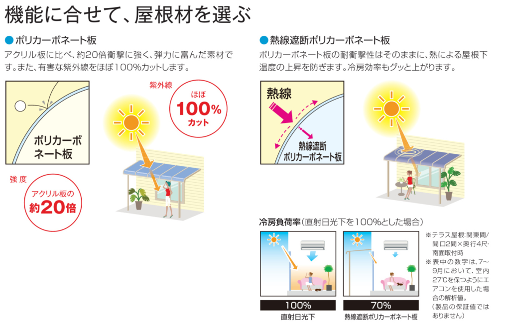 また、ポリカーボネート屋根材は紫外線をカットする性能も備えており、衣類の色あせ防止にも役立ちます。春の強まる紫外線対策としても効果的です。